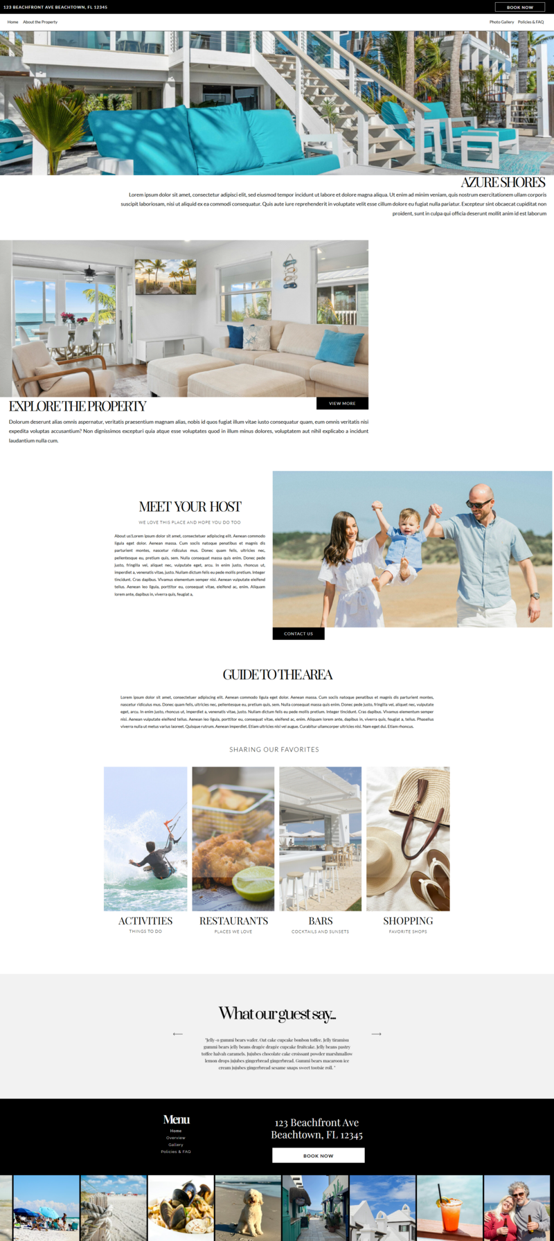 While we showcase this template with coasta styling, the design is completely customizable for any shiort term rental property. Whether you own a city loft, lakefront cabin, desert retreat, wine country estate, or countryside cottage, this template adapts to showcase your unique property perfectly. The flexible layout and customizable elements work for any location, style, or rental type.